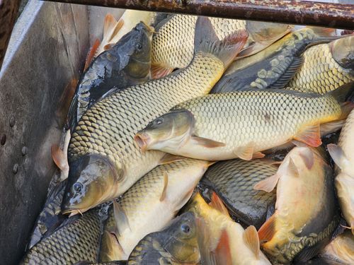 Kapr tržní 5500 kg (2,7 kg/ks) - MO Moravská Třebová 1600 kg, MO Police nad Metují RMV 2400 kg, ÚN Rozkoš 1500 kg